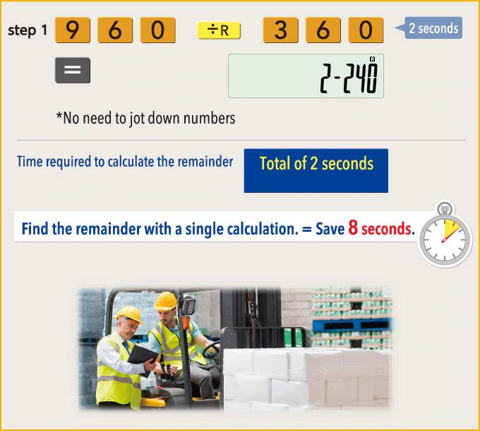 在倉庫中,計算器用於驗收、盤點和揀選。↓餘數計算功能,提高操作效率