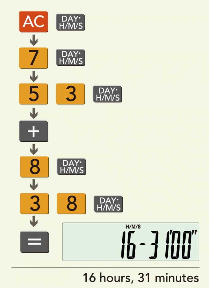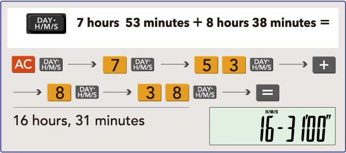 一名員工一天工作了 7 小時 53 分鐘,第二天又工作了 8 小時 38 分鐘。員工在這兩天的時間里工作了多長時間?