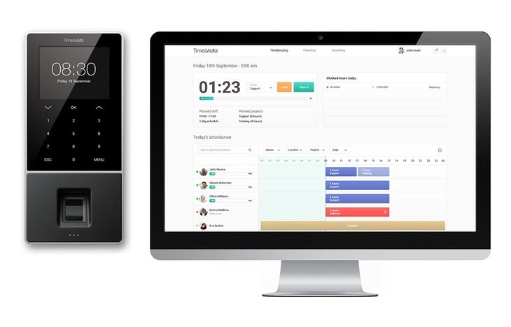 員工可以選擇他們想要的考勤方式:MIFARE、DESfire RFID 智能卡或掃描指紋。 TimeMoto TM-828 SC 與 TimeMoto Cloud 雲端能無縫溝通。讓您可以即時準確地了解員工的考勤記錄和出勤情況。